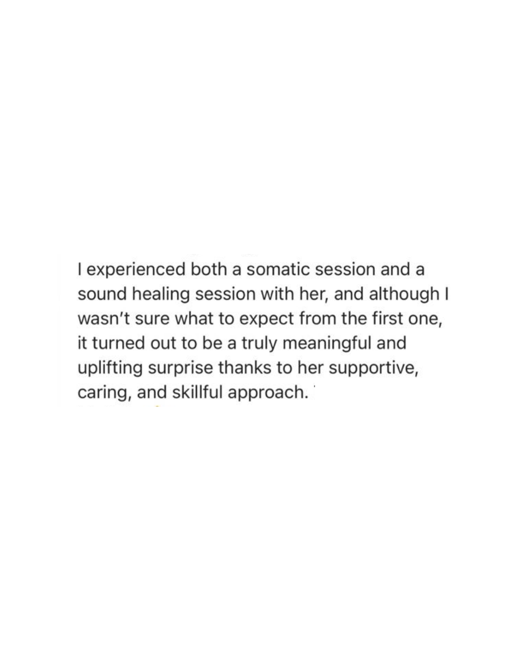 It is a private, personalized session that blends nervous system–informed Somatic Experiencing® with therapeutic sound. Rather than focusing on retelling your story, we work with bodily sensations, nervous system responses, and sound vibrations to support regulation, release, and integration.
